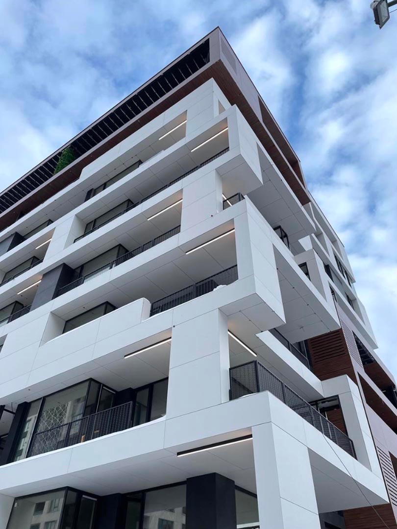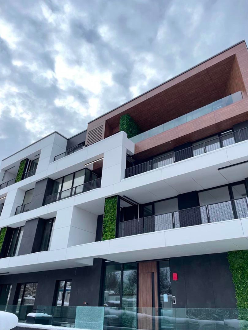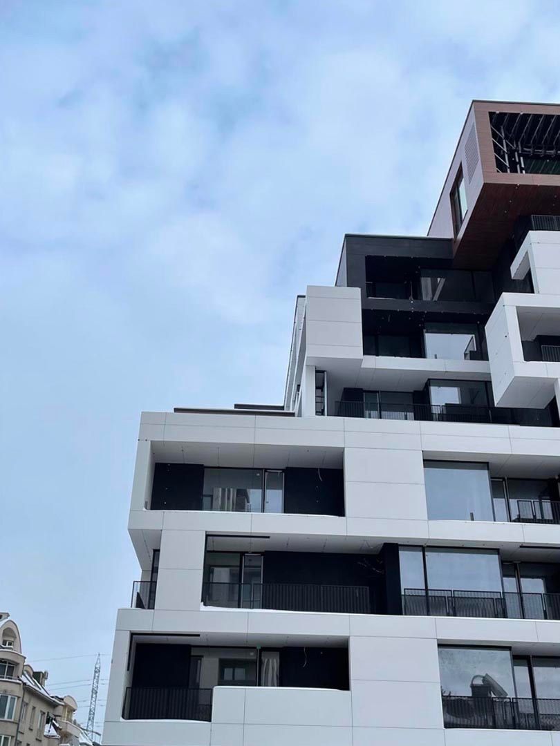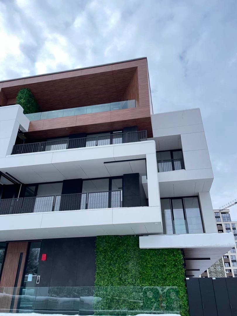 We installed a ventilated facade using Laminam and HPL panels (glue system), as well as aluminum window systems by Schüco. This project is an example of the harmonious combination of modern technologies and refined design.
